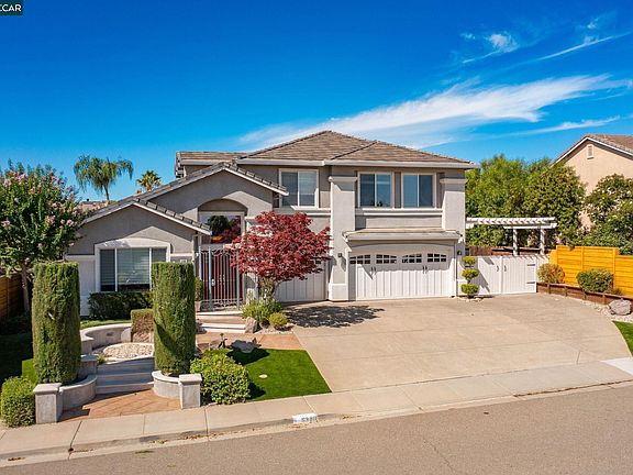 WELCOME TO CAMELOT - Where million-dollar views and luxury combine to create a truly heavenly abode. Every detail exudes top-notch quality. Upon arrival, you'll be captivated by the meticulous front yard designed by Genesis Landscape, featuring a stunning acid-stained medallion surrounding bench seating. An extended aggregate driveway, along with a spacious RV pad. Step through the double mahogany front doors to enter a dramatic foyer adorned with La Crema marble and granite inlays. French doors gracefully separate the living and dining areas. The family room boasts a raised hearth marble fireplace with custom-built walnut cabinetry, a ceiling fan, and shutters. The sunny kitchen has been tastefully remodeled, including a Thermador 6-burner gas stove, Dacor, and Bosch stainless steel appliances. An island with a wine fridge, and abundant cabinets with lower-level pull-out drawers. The lower bathrooms are remodeled. Upstairs, a sprawling bonus room (19x17) awaits, offering versatile usage possibilities, also a walk in attic for storage.The three upstairs bedrooms have fresh carpet and paint. The backyard is amazing! A custom-built knotty pine covered patio by TD Construction, with skylights. An outdoor kitchen with polished concrete bar, a fire pit and spa too! Inground pool!!