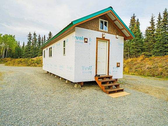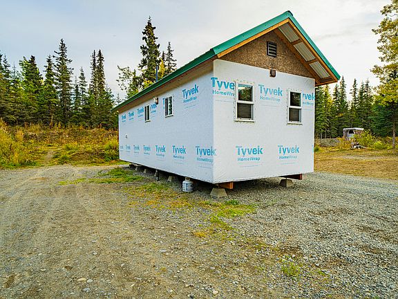 Perfect start to your Alaskan Dream. Two lots at 4.47 acres, a very well built little cabin. Just in time to add your own touches and make it yours! No well or septic yet, but everything is stubbed in and ready. Heats very well with a little electric heater, several outbuildings with power, shelter logic tent stays. Extra slot at the meter for wiring in a shop. Very private and peaceful lot!