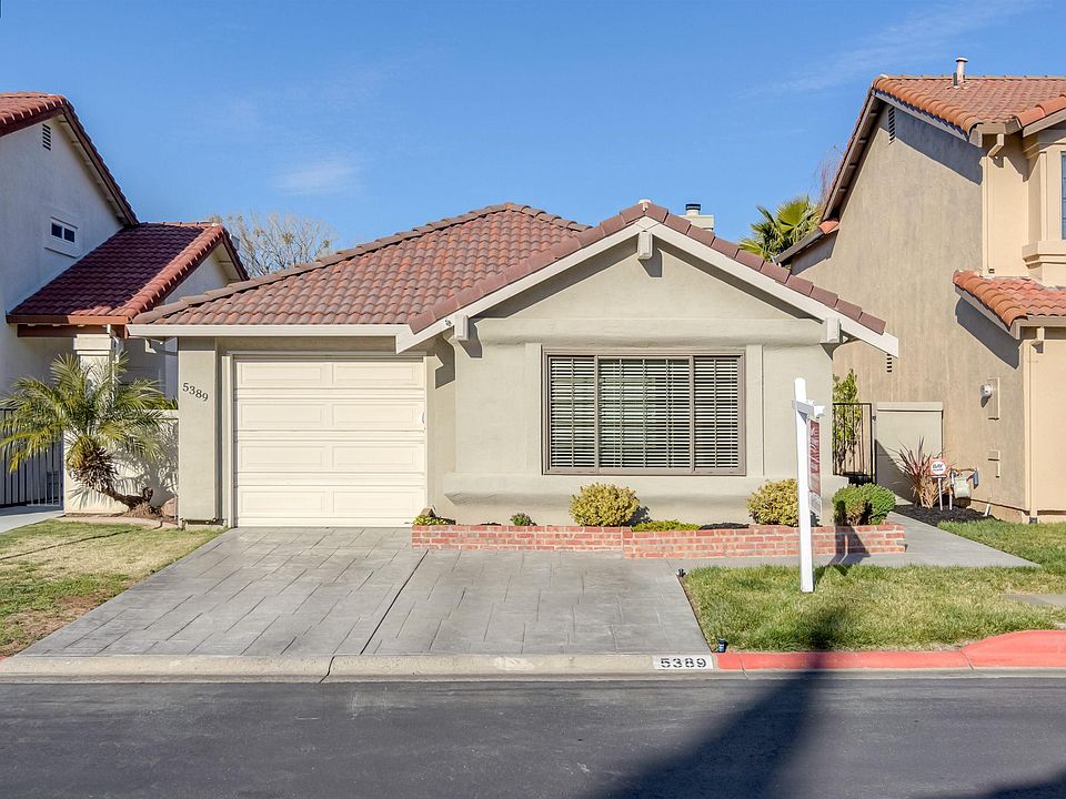 This single story home features plenty of natural light and great flow with an open concept feel. Many tasteful appointments throughout, this home is move in ready! Updated lighting, crown moulding, refreshed neutral paint and large plank laminate flooring throughout all common spaces, and new carpet in all bedrooms.Tastefully updated kitchen features freshly painted white cabinets with updated cabinet hardware, neutral countertops, recessed lighting, double oven and stainless steel appliances. Open concept living and dining area features vaulted ceiling, woodburning fireplace and Anderson slider leading to private back patio. Primary suite includes vaulted ceiling, generous closet with built in closet system, and updated en suite bath with walk in shower, double vanity and updated lighting. Private backyard retreat includes paver patio area, low maintenance landscaping and an avocado tree. HOA dues of $130/month includes greenbelt, common area maintenance including streets and sidewalks. Schools: Ayers Elementary, Pine Hollow Middle, Choice of High School.