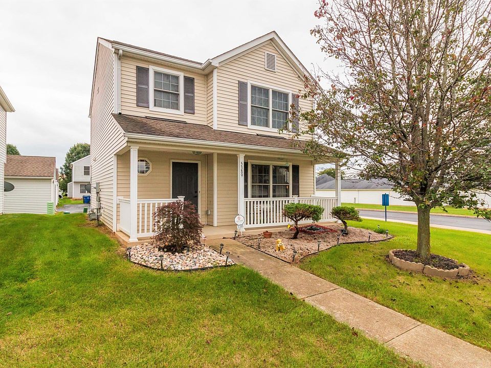 Amazing View! Sit on your spacious front porch and enjoy the ponds and green space directly across. Inside you'll enjoy the gas log fireplace in family room, open to large eating space and generous bright kitchen. Second level boasts BRAND NEW carpet, convenient washer/dryer hook up, 3 bedrooms including the master suite with vaulted ceilings, ENORMOUS deep walk-in closet and full private bath. This lovely home offers a nice back and side yard with a 2 car detached garage. Fantastic location, close to freeways, shopping and restaurants. This one won't last long!