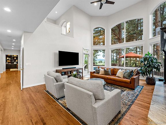 This Bainbridge Custom Home has been updated with exquisite yet classic finishes such as honed Italian marble and honed granite, two-tone high-end maple cabinetry & professional grade appliances! The moment you enter you will feel like you are walking into an Architectural Digest Magazine! The outside paradise can be enjoyed from the wall of windows in the 2-story living room and custom deck! The outdoor living space is incredible with large entertaining deck with 3 entrances to the home along with the covered patio in walkout basement both with incredible views! No detail has been forgotten with Media room, workout room, wine cellar, wet bar and fireplace in the large bright walkout basement. Upstairs you’ll appreciate the mountain views from your Primary suite with Double vanities, walk in closet and spa tub! There is a Jr. Suite along with Jack and Jill set up for family and guests! There is nothing like entertaining in this space to come home, relax and enjoy the sounds of wildlife and stargazing! With the private patio and deck space you will enjoy resort style, private living amongst nature! For fun you can walk to the first rate nearby dog park, explore nature on the abundant trail system and walk to Bingham Lake AND Elementary School! With a quick jaunt to quaint Main Street charming shops and as a bonus you'll have access to Pinery Country Club w/ clubhouse swim & tennis facilities & Pradera Golf Club w/ membership.