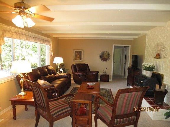 Park-like setting. Here's a wonderful home with 3.2 acres of park-like landscaping- sweeping lawns, rhododendrons, azaleas, just absolutely beautiful. Home features 3 bedrooms, 2 baths, approx. 2506 so, office, living room with fireplace, family room with gas fireplace, newer kitchen with island and sunny breakfast nook, 2-refridgerators, lower level bedroom can be extra family room with built in bookshelves, tiled tub shower in guest bath and cultured marble in master. FA gas heat and central A/C, 2 car carport, 2-decks, covered patio, spa, 2 sheds, garden area, RV parking, irrigation and the property backs to BLM. All information is deemed reliable but not verified; anyone considering purchasing this property should perform their own investigation into the uses and condition of the property.
