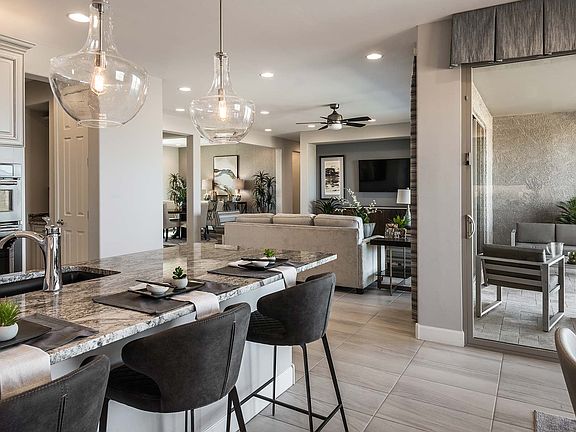 The popular 1-story Echo floorplan has it all! Enter through a private courtyard. The foyer will lead you into the open Great Room, dining and kitchen. Three bedrooms, a flex room, and a den make all your storage and hobby rooms possible. The flex room can be turned into a 4th bedroom if desired. The owners suite is a dream, including a large bathroom with 2 sinks, and a walk-in closet. Additional Architect's Choice enhancements include a gas fireplace in the Great Room, walk-in showers, an extended covered patio, a gourmet kitchen and more.