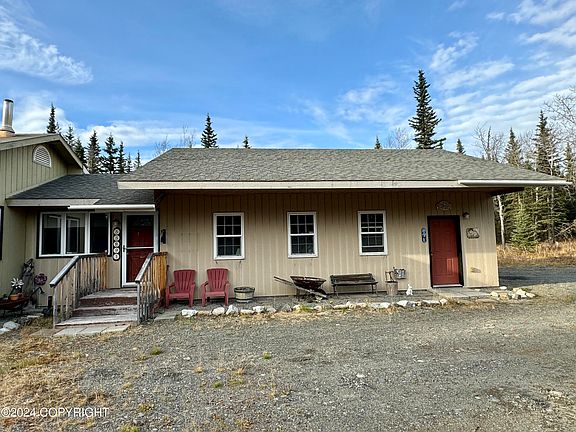Alaskan home on almost ten acres of solitude with a large gravel driveway, perfect for parking an RV and other toys. There is a workshop, wood shed, greenhouse, two other sheds and lots of room for a garden, chickens, horses or other animals. Large garage has full bathroom. Kitchen cabinets and moveable island are handmade. Brand new Toyotomi heater and 8'x8' deck! Kasilof beach is 2 miles away!