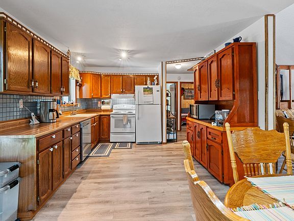 Serene acresOpen-concept kitchenNew kitchen countersSpacious layoutWood stove