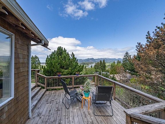 Stunning ocean, bay, river and coastal mtn views from this home in quaint Wheeler, OR. Enjoy the view from sunrise to sunset from wraparound deck and every window of the open, light and bright living spaces. Main floor living with primary suite and second bedroom. Third bedroom serves as guest suite, office/den and full bath with a lower level private entrance and patio. Whether you love to fish or just love sitting and enjoying views, this home is a true coastal treasure.