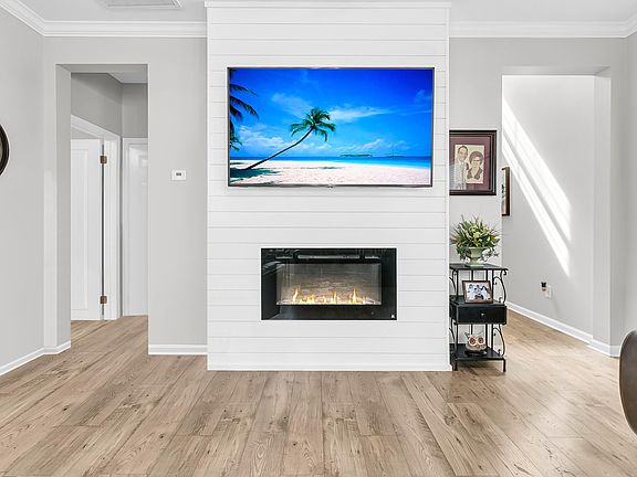 Stunning Modern Home with Premium Upgrades in Foxbank Plantation! This beautifully upgraded, move-in-ready home has it all! From the moment you step inside, you'll be greeted by sleek flooring that spans the entire home--no carpet in sight. The open-concept floor plan is anchored by a modern fireplace, perfect for cozy autumn evenings, and the large windows invite ample natural sunlight. The living space flows effortlessly into the oversized, private, fenced-in backyard. No need to worry about prying eyes; this home backs up to a serene wooded lot, providing a peaceful, private retreat for outdoor entertaining or relaxation on the extended patio or by the custom firepit.The kitchen is a chef's dream, featuring stainless steel appliances, upgraded cabinet hardware, and custom shelving in the spacious walk-in pantry. Upstairs, you'll find all of the bedrooms, including the luxurious master suite. The master bath boasts a walk-in shower, separate soaking tub, stylish black fixtures, upgraded lighting, and chic mirrors giving you a spa-like experience at home. Located in the sought-after Foxbank Plantation, a master-planned community with incredible amenities such as a scenic lake, elementary school, fire department, two pools, a pavilion, dog park, kids' parks, fitness center, restaurants, and vibrant community events there's always something to enjoy!