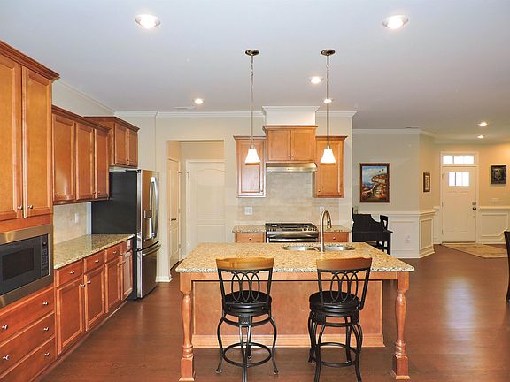 Come home to comfort, style and quality! This well appointed END UNIT Townhome offers the best of first floor living with openness and flow. Beautiful flooring through the open entry, gourmet kitchen and family room with fireplace! Granite counter tops, gas cook range, large center island & Stainless Appliances. You’ll love the large 1st Floor Master Bedroom w/Trey Ceilings & tons of natural light. HUGE 30x18 Bonus Room perfect all your Entertainment needs. Screened Porch and Private Wooded back yard! 2 minute drive to Wegmans!! Close Downtown Wake Forest! Come make this fantastic house your new home!
