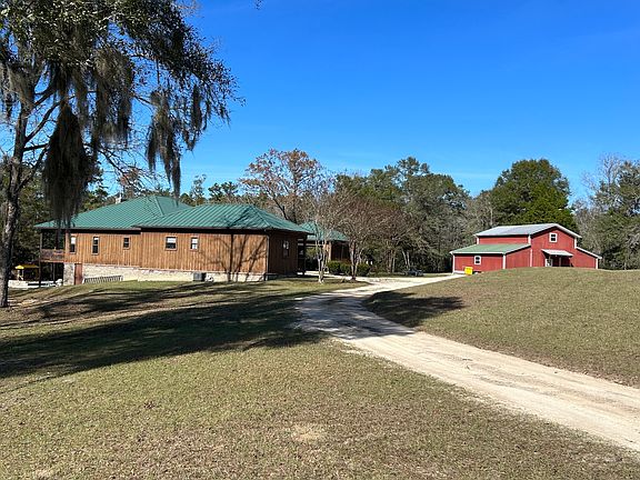 Slightly north of the Flora Bama Line, lies this beautiful home on acreage just awaiting its new owners. You'll enter the property by way of a lengthy private drive which runs alongside lush pastures and eventually leads back to the seclusion of this uniquely designed, multi-family home. Although the home itself comprises three bedrooms and four bathrooms, it's uniquely designed being that it's subdivided into a main living unit, a lower in-law suite unit, and a separate guest unit. Each of the three units has its own private entrance and contains its own kitchen, bed, and bathroom; perfect for multi-family getaways or for entertaining weekend guests. The home also has a two-car covered parking area attached. Other notable home features include a forty-foot saltwater pool and pool area hot tub which should provide good times and relaxation for all. Sensational views can be had from the home's upper deck which allows you to peer over the fishing pond and backfield where numerous deer and turkey can be seen on a regular basis; and with a perennial creek running through nearly 25 acres of wooded ground, the animals have all that's needed to thrive in healthy numbers. You may also want to take advantage of the property's income-producing possibilities. With nearly 35 acres of cleared, open ground you'll have the benefits of hay production as well as the ability to board numerous cattle. The current owners harvest over 200 round bales of hay per year and board over forty head of cattle. Perhaps you'd like to continue with the current operations or pursue other income-producing possibilities such as farming this fertile, tillable ground. Regardless, there's a variety of ways to allow your land to work for you. Additional property features include a 50 x 60 ft hay barn with lean-to, a 28 x 54 ft seed barn storage barn, and a 30 x 48 ft workshop with woodworking room and separate metal fabrication room. Certain equipment and furnishings as well as some livestock can be purchased separately if desired. Give us a call today to schedule your private tour.