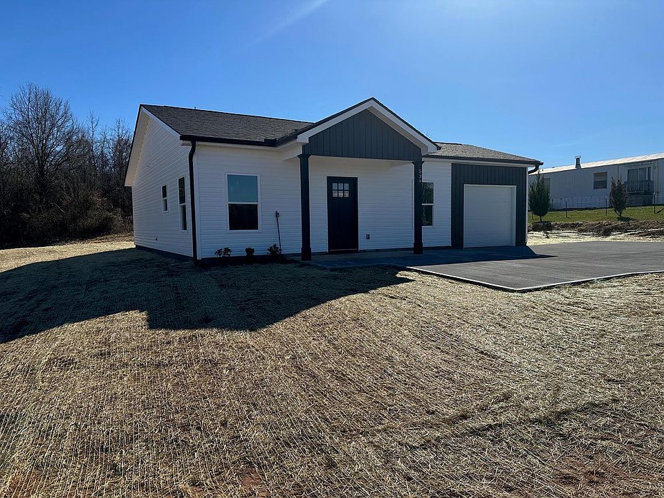 New construction! This one-level home features 3 bedrooms, 2 full baths, smooth ceilings with recessed lighting throughout and attached garage. Great open concept with center island in kitchen. Stainless steel appliances and Corian counter tops. Walk-in laundry room. Patio in back overlooks a large 3/4 acre lot. No HOA. Enjoy low-maintenance, easy living in this adorable home!