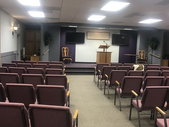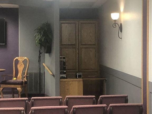 Clean Slate!! This property has been used as a church since construction. Building is open room with an office room and 2 bathrooms. Could be converted into a home or possibly used as care facility/meeting hall etc. The lot is paved and has ample parking spaces.