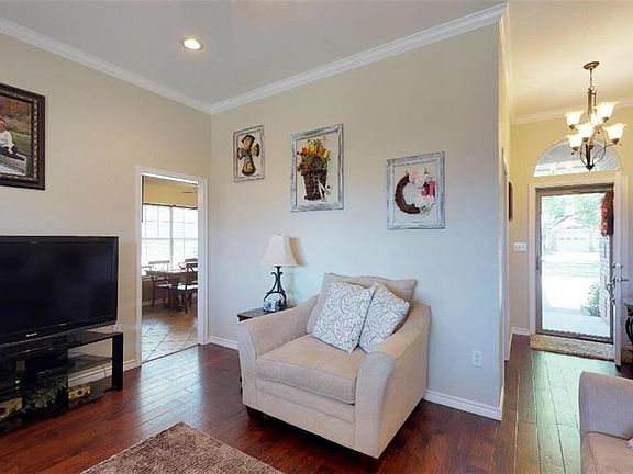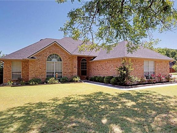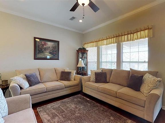 Stunning single-story home located on large corner lot in the heart of Pilot Point! Inside you will find 3 bedrooms, 2 full baths, second living area, bonus flex room that makes a terrific study, and 2-car garage! Upgrades throughout include rich hardwood flooring, an abundance of natural lighting, designer paint tones, extensive crown molding, vaulted ceilings, new roof and gutters in Jan 2018, cozy floor-to-ceiling wood burning fireplace, and MORE! Gourmet kitchen boasts granite countertops with tumbled stone backsplash, an abundance of cabinetry, gas range, and spacious nook. Your private backyard oasis is complete with an open patio, sparkling 24ft above-ground pool, and 16x10 storage shed with electricity!