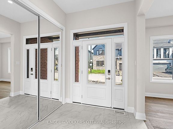 Welcome to this stunning, newly built 5-bedroom, 5-bathroom home, perfectly situated on a rare premium lot that backs directly onto the tranquil Jock River in the heart of Barrhaven. This exceptional property combines elegant design, thoughtful layout, and an unbeatable location for modern family living. Step inside to a bright and spacious main floor featuring an inviting foyer with a convenient powder room nearby, a dedicated home office, and an open-concept great room complete with a cozy fireplace. The chef-inspired kitchen boasts sleek white quartz countertops, stainless steel appliances, a large centre island, and walk-in pantry -- perfect for entertaining or everyday family meals. A functional mudroom off the double garage includes a walk-in closet for seamless organization. Upstairs, discover four generously sized bedrooms, including a luxurious primary suite with a walk-in closet and a spa-like ensuite. Bedrooms 3 and 4 also enjoy walk-in closets, with Bedroom 4 featuring a private ensuite. Bedrooms 2 and 3 share a stylish Jack and Jill bathroom. A convenient second-floor laundry room adds ease to your daily routine, and the bright loft with its own balcony offers a perfect retreat or additional family space. The fully finished basement includes a spacious fifth bedroom ideal for guests, in-laws, or a growing family.This remarkable home offers the perfect blend of comfort, style, and serenity, all while enjoying peaceful views of the Jock River. Some photos have been virtually staged.