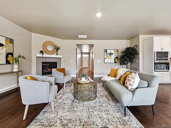 Gorgeous ranch home in sought after Brighton Crossing neighborhood! Move-in ready, xeriscape backyard with turf, bright open kitchen, double ovens and many upgrades! Office has gorgeous glass french doors, double sinks in the full bathroom for the bedrooms to share. Primary bedroom is separate from the other bedrooms, and has 5 piece en-suite bathroom with huge walk in closet. Enjoy your lovely fireplace in the large and welcoming living space, open to the kitchen and spacious island, perfect for entertaining. Full unfinished basement ready for you to make it yours or leave as is. New elementary school walking distance from home, as well as fitness center, clubhouse and outdoor pool. Schedule your showing today!