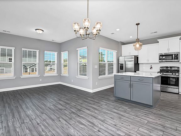 This corner lot home comes with it all! GE stainless steel appliances, including the refrigerator, and washer/dryer have been added to this Langford plan. The fencing and blinds for the entire home also come with this gem of a home. This move in ready home is two stories with five bedrooms and three full bathrooms. The foyer opens to the large family room and arched openings leads to the kitchen and dining area. The kitchen features stunning white cabinetry, marbled quartz countertops, tile backsplash and great sizable pantry! Adjacent to the kitchen and eat-in area is the relaxing sunroom with a 12x10 foot patio located just outside the back door. This home hosts a guest suite on the first floor and four additional bedrooms upstairs. The primary suite gives you the oasis you are searching for with it's quaint sitting room tucked away, large walk-in closet and a primary bath giving you a separate tub and shower, water closet and linen closet.