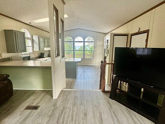Premier Lake View End Lot #1 @ Highland Inn Resort + Boat Slip 3 bedroom / 2 bathroom 1500 sq ft / new vinyl plank flooring Best lot and view at Resort (no east neighbor--final lot facing lake) Water is on April 25 - October 15 (OK to stay anytime during the year.) Yearly Park Fees $4800 include water, trash, lawn care, sauna/hot tub access County tax $440 Mobile home (furnished) couch/love seat/recliner/tvs/beds New vinyl plank flooring (kitchen + livingroom) 1280 sq feet. 500 sq ft deck 220 sq ft sun room (newer knotty pine) 140 ft two-section shed Central air New vinyl plank flooring (kitchen and living room just installed)