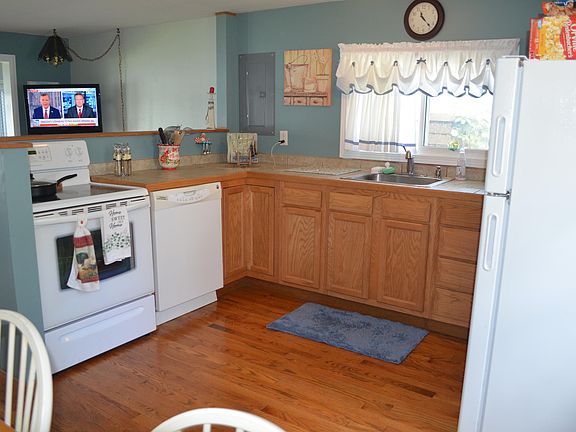 Beautiful views of Huyck Lake from almost every room in the this cottage! Year around cottage features an open concept. Kitchen was new in 2010 with tiled counter tops, hardwood floors and appliances all stay. Dining area has additional cabinet and counter space. Great for a buffet area or coffee bar. Living room faces the lake so you can enjoy the wonderful views. Cottage also has a new roof, brand new gutters, main floor laundry room and central air. Large deck faces the lake, perfect for grilling and relaxing. Cottage comes completely furnished including a pontoon!
