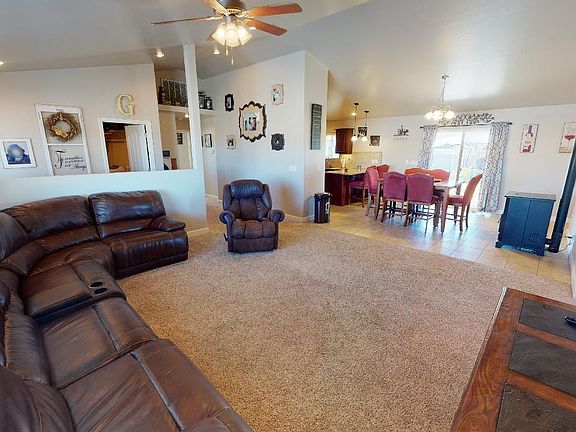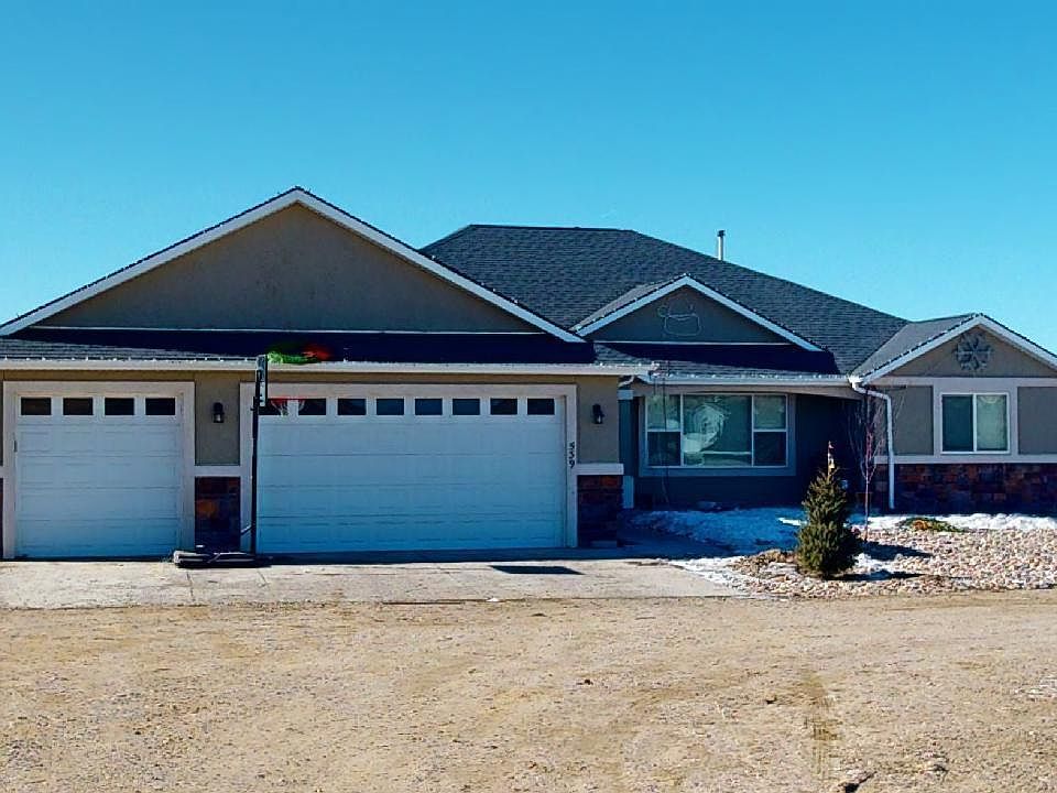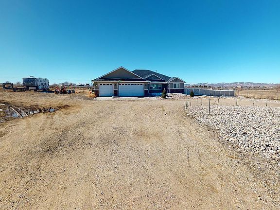 Beautiful newer 4 bedroom, 2 bath home with 3 car attached garage on 1.37 acres in Spring Creek. Home is in a cul-de-sac and has vinyl fenced back yard with drive-in access and a large, covered patio with lighting and power. Storage shed and trampoline stay with the home. Fire pit and horseshoe pits are a fun backyard addition. Stucco exterior is east to maintain. Inside you have a split bedroom, open floor plan with tons of natural light throughout. The kitchen has a breakfast bar, pantry, tons of cabinet and counter space, granite counter tops, tile back splash, double oven, and stainless-steel appliances that will stay. The pellet stove in the dining area will heat the entire home if propane is not ideal for you. Large laundry room with sink, counter, cabinet and hanging space. The primary is huge with a jetted tub, over sized shower, double sinks, raised vanities with granite and large walk-in closet as well as patio access. Central AC. Tankless Water Heater.