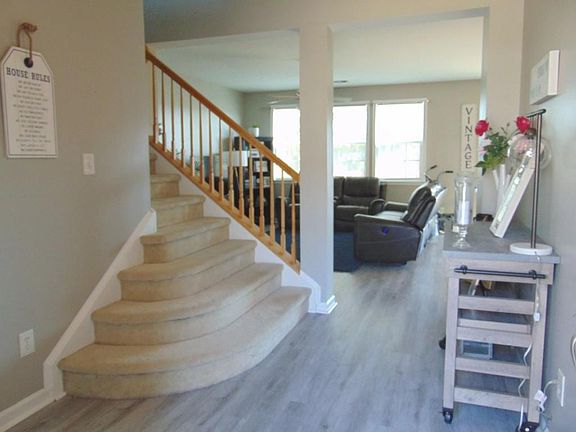 Welcome to this sunny spacious open floor plan. Family room open to dining room and huge kitchen with stainless appliances and an abundance of cabinets. Master bedroom with private bath, two additional bedrooms, spacious secondary bathroom and a huge laundry room complete the upper level. Upgrades include newer main level flooring, powder room vanity, newer roof, stainless appliances, nest thermostat, ring doorbell, newer HVAC system, hot water, and lighting. Relax and enjoy the private fenced yard, great swim/tennis community, close to great area schools, shopping and dining. Total HOA dues are $450 - split into 2 semiannual payments. No rental restrictions.