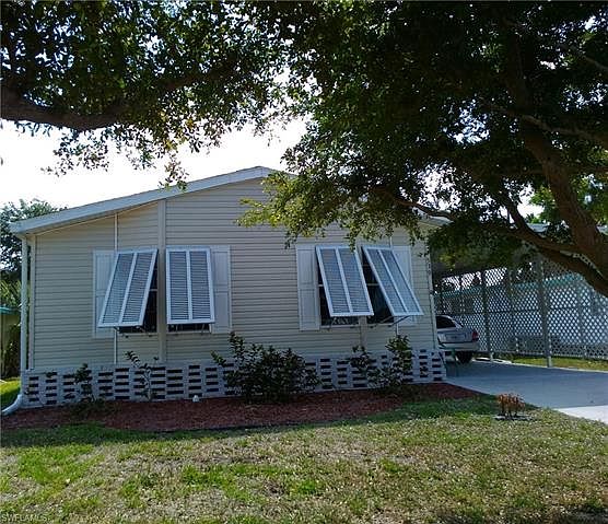 Spacious double wide, 1655 sq.ft. in Riviera Colony has been well cared for by original home owner. Paved driveway leads to covered carport plus screened lanai with storage area. Bahama shutters all around keep interior cool. Flooring was upgraded to wood laminate. Family room/den is in in front of home with plenty of light coming from double set of windows. Formal living/dining room give plenty of space for family & friends. Washer/Dryer are set in closet space next to kitchen pantry. Kitchen has lots of cabinets for storage and counter space and small eat in kitchen table. Master bedroom is set apart for privacy and quietness. Located within a few miles from Naples Botanical Gardens, National Championship Pickleball courts and Hamilton Harbor for boat keeping and docking. Minutes from Naples most pristine beaches and world class shopping and restaurants. This is what retirement looks like! Priced to sell, don't delay!