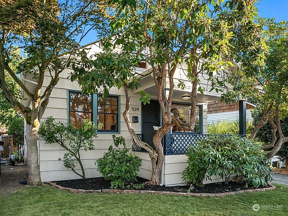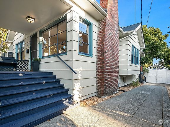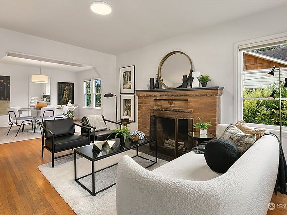 This turnkey 1921 Craftsman gem on a quiet block welcomes you! Abundant windows grace the living, dining & cheery kitchen w/bkfst nook overlooking the detached garage. Enjoy alfresco dining on the deck or in the gentle breeze on warm days under the shade of the walnut & birch trees in the partially fenced yard. The main floor is completed w/oak floors, brick fireplace & 2-beds sharing a full bath. The non-conforming 2nd bed will impress you w/secret access to upper level bonus rm. The daylight bsmt w/ sep. entrance offers good ceiling height, storage & lots of space to expand within. Ample updates incl. newer roof, electrical panel, sewer, furnace, plumbing updates, & more! Blocks to coveted Phinney Ridge & Greenwood shops & eateries.