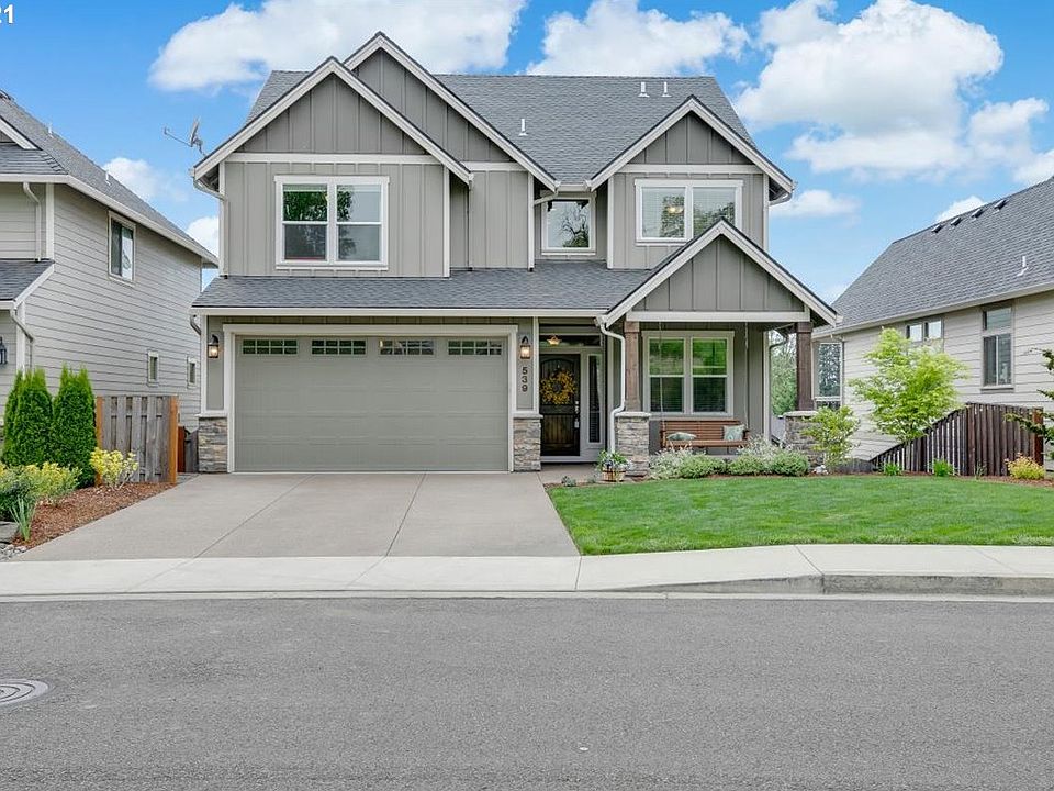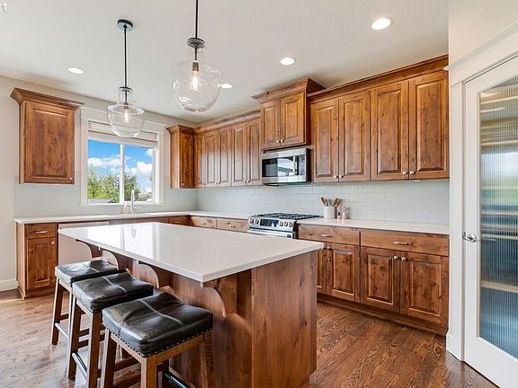 Absolutely, stunning views here in the desirable Greens at Springbrook- Chehalem Golf Course neighborhood! Extremely well taken care of with gorgeous hardwood floors, Quartz countertops, stainless steel appliances, beautiful deck with sunset views and lot's of natural lighting. 4 bdrms w/bonus room and/or 5th bedroom. Den on main. Three stories with a large vaulted owners suite, and 3 additional rooms upstairs. A spacious daylight basement with entertaining space, another bedroom and full bath.