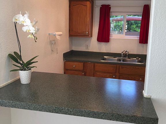 Quiet, cozy and clean one bedroom, one bath plus private laundry room with washer/dryer. Nice kitchen with breakfast bar, stove and refrigerator. Large stone-tile shower. Tile floors. Common patio area and storage shed. Off street parking. First and Security. Available Oct 1. Text Kathy. Owner pays for Water/Trash/Sewer/Gardener