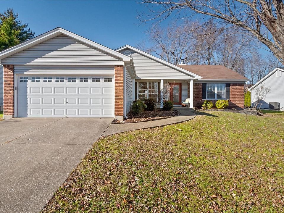 Welcome home to this 3 bedroom, 2 bath ranch with a split-bedroom floorplan. Located in the heart of St. Peters, you will love the space this home has to offer. The large vaulted great room has a floor-to-ceiling fireplace with built-in shelving and beautiful luxury vinyl plank flooring. The kitchen was remodeled with hickory American Woodmark cabinets with the small details kept in mind, including pull-out pantry shelving and pull-out trash can. It also has stainless steel appliances, all staying for the next owner. The master bedroom suite features 2 clothes closets, a linen closet and full bath with shower. The 2nd and 3rd bedrooms complete the main floor with a full bathroom. The finished lower level features an immense great room, a sleeping area and a rough-in bath ready to complete. The level backyard fenced, backing to the local elementary school. You will immediately feel how well the home has been taken care of over the years.