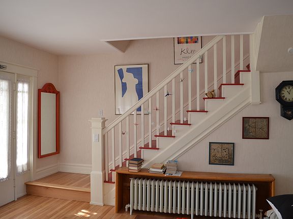 Absolutely charming Craftsman located in Emmaus PA which has made Money Magazines list of Best Places to Live. This home has been well maintained and is a must see. On the first floor you will find an open floor plan with hardwood floors and lots of natural light. Stained glass windows, French doors, and archways add charm and character. Kitchen has been updated and includes neutral, solid surface counters, tile floor, and tile back splash. Upstairs you will find 3 large sunlit bedrooms all with walk-in closets and wood floors. 2 full bathrooms add convenience. Full, walk out basement with workshop. Step off the back porch into a gardeners delight: fruit trees, vegetables, and perennials abound. There will always be something in bloom. There is a detached 1 car garage with storage and a paved parking area.