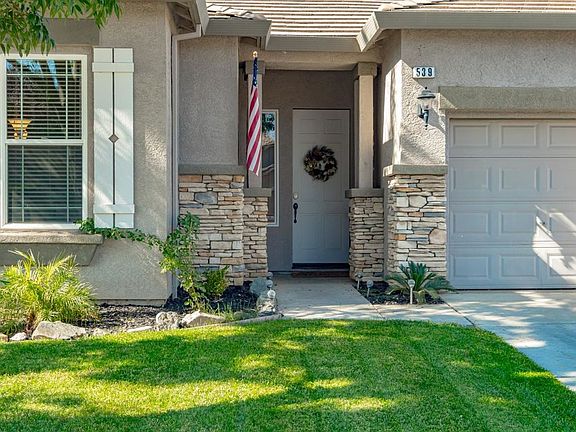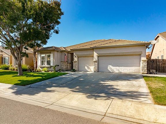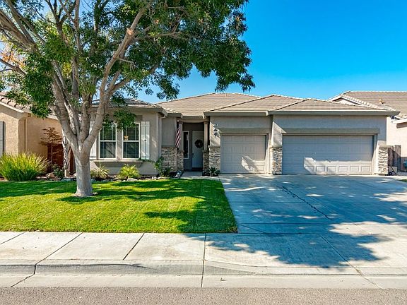 Check out this open floor plan located in Newman's desirable Lucas Ranch neighborhood! Low maintenance stucco exterior with stack stone elevation and tile roof! Tiled floor entry connects to the updated laminate wood finish floors that run throughout the home. Great room perfect for entertaining has the large kitchen with expresso stained cabinets, updated stainless appliances and functional center island. Spacious family room has a gas fireplace and ceiling fan. Dining area has custom barn doors and slider for outside access. Inside laundry room with cabinets. Master suite has a large walk in closet, double sinks, sunken tub and separate shower. Attached 3 car garage with automatic opener. Backyard has been landscaped with an extensive stamped concrete patio and there is still room for a grassy area or garden. Don't delay and call to schedule a viewing!