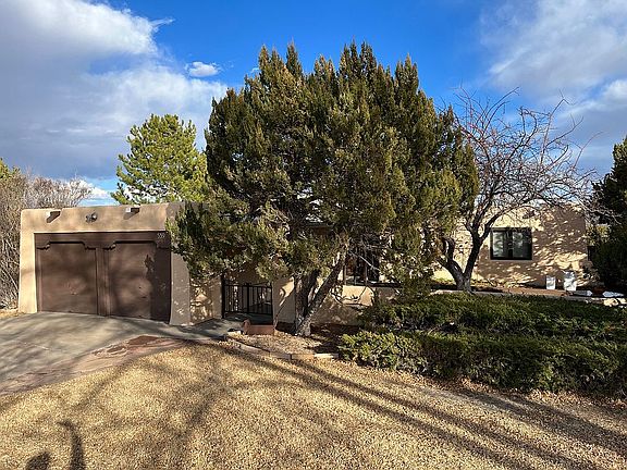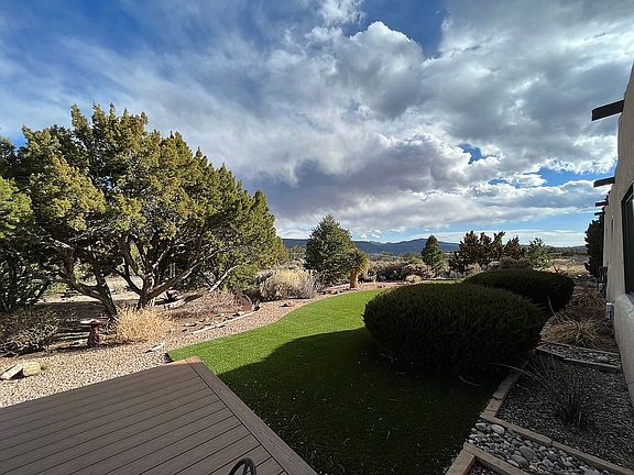 Rare opportunity to be on White Rock Canyon. Pride of ownership is apparent in this lovely single family home. Located on a half-acre perimeter lot, it has beautifully landscaped front and back yards. Panoramic views! There is a gorgeous courtyard at the front of the house and a small courtyard to the side. Kitchen has a wonderful skylight to bring in the natural light. Kitchen opens to large breakfast area. Induction cooktop, double oven, & dishwasher, stainless steel sink with disposal & full size pantry, home has been updated including fresh stucco and paint. The large living room has an attractive wood/beam ceiling, ceiling fan, kiva fireplace and wonderful picture windows to enjoy the fantastic views. There is also brick ledge seating area around the perimeter of the living room. Good sized bedrooms. Master bath with granite countertop, cabinets with soft close drawers, walk-in shower, and tile floor. Irrigation & drip system installed, Insulated windows, new roof, electrical panel. Back includes new stamped concrete patio and viewing deck. Artificial turf makes for low maintenance and a beautiful green environment. Stars are amazing, the birds love the junipers and pinons.
