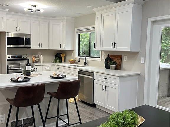 - Features: Breakfast Bar, Cabinets Other, Cabinets White, Tile Counters