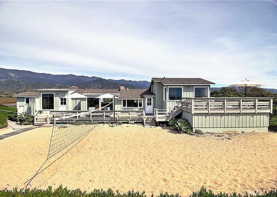 Live the California dream. Step right out your back door to the beach and crashing waves. The spacious four-bedroom, fully furnished and equipped home offers everything for the perfect, relaxing beach getaway. Located within a guard-gated community and a quick hop to the boutiques and restaurants near Santa Claus Beach, this home is a wonderful vacation spot for an extended stay The home offers four spacious bedrooms, three baths, and two livings areas. The living areas and two of the bedrooms have stunning ocean views and the others have amazing views of the Carpinteria Salt Marsh and stunning coastal mountains behind. Two bedrooms have two twin beds, one has a queen sized bed, and up the stairs is a master suite with private full bath and a king sized bed. A recently remodeled kitchen has beautiful cabinetry and all appliances. Two separate ocean-side deck areas are the perfect spot to have lunch in the sunshine or catch the sun set over the Pacific. A deck area in the front offers sweeping views of the extremely special salt marsh and the opportunity to spot many migratory birds. Play in your own back yard beach volleyball court or stroll along the coastline. This part of the ocean is the perfect spot for surfing and paddle boarding. Carpinteria is a 15 minute drive to Santa Barbara.