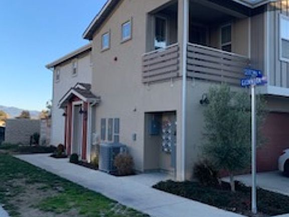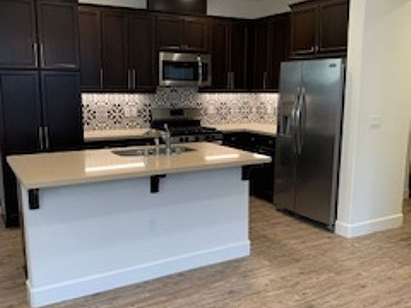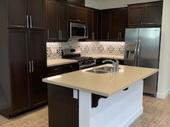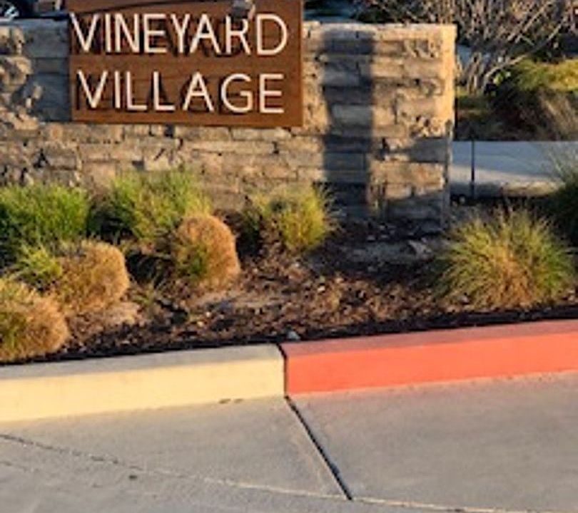 Charming Vineyard Village townhome. All living on upstairs level. Two bedrooms, two full baths, two balconies and two car garage. Kitchen open to living and dining area, includes stainless appliances including refrigerator, great backsplash, island with double sink, built in microwave and piedrafina counter tops. Master bedroom offers huge walk in closet, balcony and master bath with double sink and large walk in shower. Upgrades include laminate wood floors, wood accent wall and great light fixtures. Inside laundry room with washer and dryer, extra hall storage, coat closet and lots of windows for natural light. This is a great location for commuters and walk to shopping, restaurants, and all the conveniences.