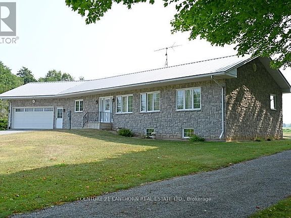 Country Charm with a perfect blend of space, privacy and opportunity. A great home to retire or raise a growing family. Custom built Stone Bungalow with updated newer windows and front door in 2014, metal roof and upgraded electrical panel box. An inviting large working kitchen with open concept dining and living room, 2 generous size bedrooms and one 4 pc. bath. Convenient main level laundry room with single tub and sink and new washing machine and room to expand into a 2nd bathroom. Basement has lots of room to make more bedrooms, bathroom, game room or workshop. The generous size 2 car attached garage has a side door access to main living area and separate stairs that go to the lower level basement. This lovely 1.65 acre property has 450 feet frontage, lots of parking, mature trees and flower gardens, wooded area, separate side driveway and dug well with good water supply. Located centrally and minutes from Bloomfield and Picton and on a school bus route. Baseboard heating cost approx. $209 monthly for both heat and hydro. Bring your creativity and decorating ideas and make this house your home. ** This is a linked property.** (id:41440)