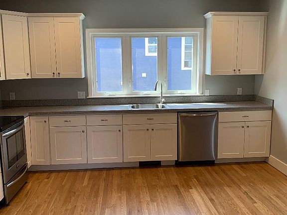 Absolutely gorgeous. Totally renovated. 3 bedroom 3rd floor apartment with off street parking. Minutes to Holy Cross and other colleges. Doesn't get any better than this!! Large fabulous kitchen w/upscale cabinets and stainless appliances (stove, refrigerator, dishwasher, microwave). Updated bathroom. Main bedroom w/walk in closet. Hard wood floors and high ceilings throughout. Modern building w/96.5% efficient heating system makes for low utility bills. Off street parking. Coin-op laundry in building. Commuter location convenient to shopping, highways, etc. No Pets or smoking.