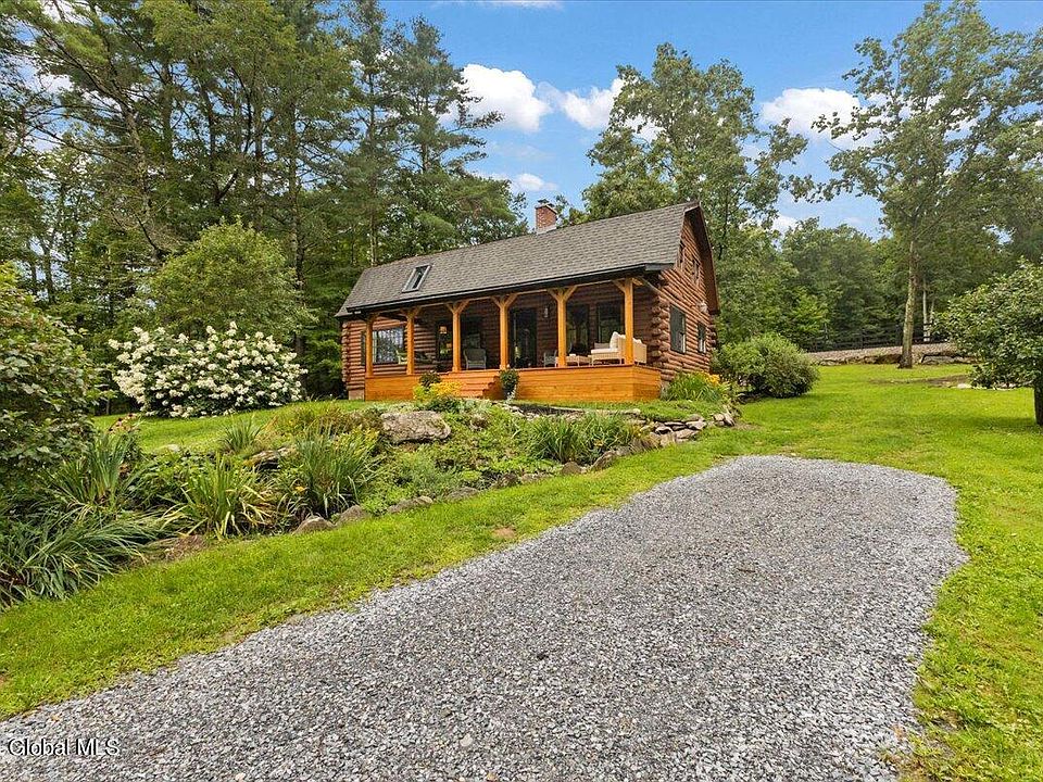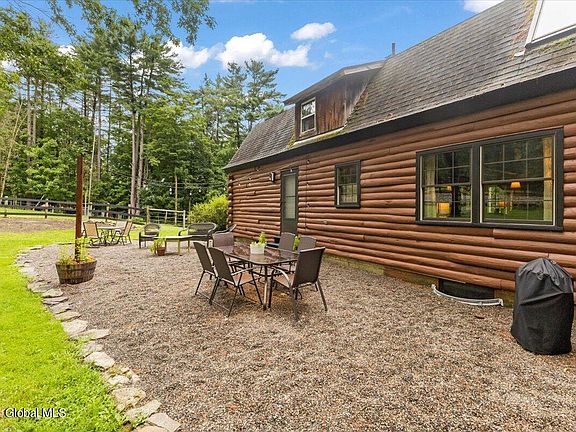 Welcome to your own hobby farm! Beautifully updated log home set in the heart of nearly 16 acres secluded country location just 10 minutes form VT line and 30 minutes to Saratoga. Run in with shed and 10x12 Stall and tack room, and new 24x12x8 hay barn and garden shed, plus a chicken coop! Nice circular driveway and a riding ring too! Trails all through property to enjoy summer hikes and winter snowshoeing. Hunting and wildlife enthusiasts dream! Custom cabinet in the kitchen from an old country store,. Many updates throughout the home including newer 200 amp electric, new perimeter drains and new energy efficient boiler. 1st level new Pella windows. Hi-speed Fios fiber internet. Wood stove can heat the whole house all year with just 3 cord of wood.