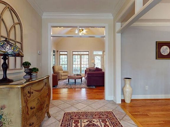 Storybook Setting In Well Established Woodbridge Neighborhood! Circular Drive Beckons To This Brick Custom Ranch w/Lg 2nd Floor Bonus. 5 BR+Office w/Closet. Generous Master w/Trey Ceiling, WIC & Dreamy Ensuite. Wonderful Kitchen Open To Family Room w/Vaulted Ceiling & Fireplace. Formal Dining. Expansive Deck Overlooks Backyard adjoining 740 Acres State Land. On North End Of Fayetteville, Optimal Proximity To Fort Bragg, Retail & I295. Served By Highly Coveted Howard Hall Elementary & PStorybook Setting In Well Established Woodbridge Neighborhood! Circular Drive Beckons To This Brick Custom Ranch w/Lg 2nd Floor Bonus and movie theatheater. Generous Master w/Trey Ceiling, WIC & Dreamy Ensuite. Wonderful Kitchen Open To Family Room w/Vaulted Ceiling & Fireplace. Formal Dining. Expansive Deck Overlooks Backyard adjoining 740 Acres State Land. On North End Of Fayetteville, Optimal Proximity To Fort Bragg, Retail & I295. Served By Highly Coveted Howard Hall Elementary & Pine Forest Schools. The home includes a fully equipped gym for your workouts, a cozy fire pit for outdoor gatherings, and a private movie theater for your entertainment. This property is serviced by a septic system and also has access to city water.