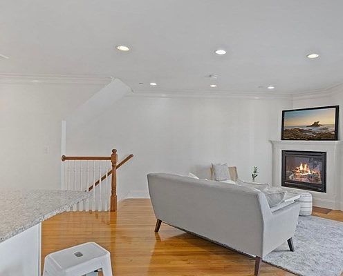 Bi-level condo with 2 private decks and parking in an exceptional Jeffries Point location! This 3 bedroom, 2 full bath condo with additional den boasts 2 private decks with both city and harbor views. Open floor plan featuring hardwood floors, recessed lighting and an elegant gas fireplace. Kitchen with stainless steel appliances and quartz countertops flooded by sunlight through a wall of glass sliders leading to your private deck. Master bedroom with duel walk-in closets & en suite bath with double vanity. Additional roof deck perfect for enjoying the outdoors. In-unit laundry room and ample closets throughout the home. 1 deeded parking space with snow removal included in the condo fee. Surrounded by green space, tennis courts, waterfront and the yacht club just steps away. Walking distance to Harborwalk, multiple award winning parks, the Blue Line & neighborhood favorites such as Downeast Cider House & the ReelHouse.