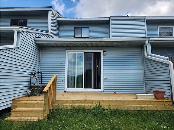 Fun living with this cute town home in the City of Watertown. 2 stories, overlooking a large yard. The first floor has an open concept with A kitchen that opens into the living room. The patio doors bring in plenty of natural light. The living room is spacious with carpeted flooring and patio doors to the back deck. The 1/2 bath is on the first floor for convenience. Upstairs has 2 bedrooms and a full bath with 2nd floor laundry. This home has a clean, full basement that is great for storage or make it extra space of your choice. 1 stall attached garage. This location is close to schools, shopping, hospital and Ft. Drum.