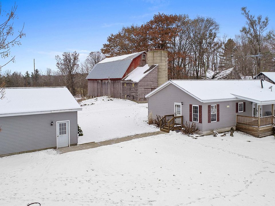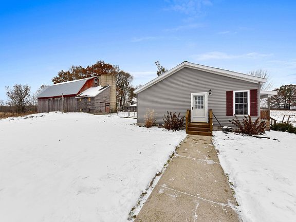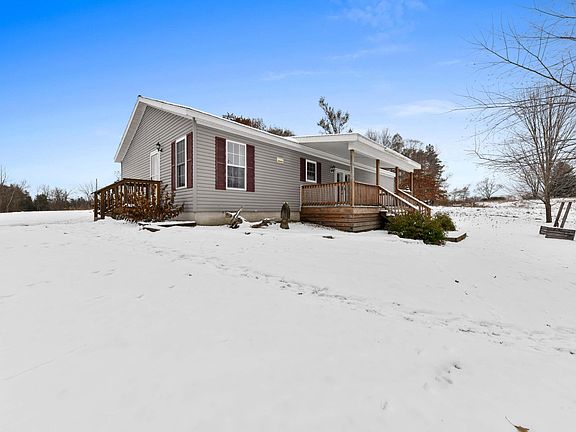 Take a closer look at this Immaculate 3 bedroom 2 bath 1350 sq ft ranch, sitting on over 25 acres of gorgeous land! Pride of ownership is evident as soon as you walk in the door. A large living area with gas fireplace opens up into the dining area with slider that leads out to a 24 x 8 covered rear deck, a spacious kitchen with island bar, and a large breakfast nook and main floor laundry. Also included is large master suite with jet tub. Home has had many updates including water heater, carpet, new well to name a few. Includes Hip roof barn that is great for storage, and a detached 2 stall garage, Acreage is mixed, 17 acres tillable, which is seeded to alfalfa, approximately 7 acres of cedar swamp and orchard. Absolutely fantastic deer hunting! Call for more information!