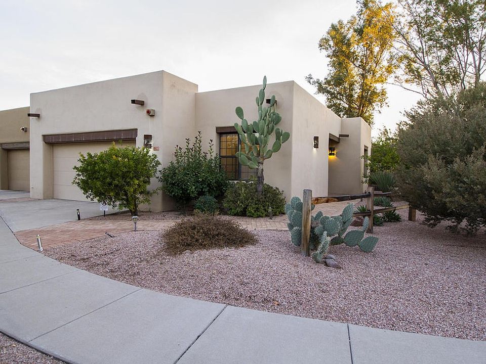 Highly desirable Historic Fort Lowell District Santa Fe style home with smooth hand troweled stucco located in an old mesquite grove.This Spacious 3 bedroom 2 bath with soaring rough sawn beam ceilings, natural light filled rooms from multiple skylights and double pane windows. Cozy corner fireplace and wet bar in living room great for entertaining, bring your guests outside to large brick patio with mature landscaping. Great community pool. Conveniently located near TMC and shopping (Whole Foods, Trader Joe's, Palomino Plaza)