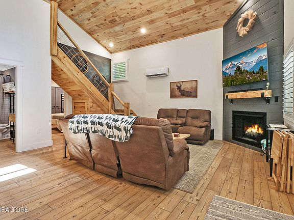 Welcome to 5390 River Rd. in Huntsville, TN! This charming home itself is a cozy 1,384 square feet, featuring 2 bedrooms, 2 bathrooms on 5 acres, and a versatile bonus room for various uses. It includes several luxurious amenities and upgrades, such as stunning granite countertops in the kitchen, which offer a sleek and modern appearance. All appliances, furniture, everything down to the dishes and silverware are included in the sale. One of the standout features of this home is the Hunter Douglas plantation shutters throughout. The primary bedroom features Duette Honeycomb shade that can be adjusted from the top or bottom. The tankless water heater, which delivers hot water on demand. Gas fireplace in the living room and a firepit to spend evening enjoying the great outdoors. Each room is equipped with mini-split units for comfort. Additional conveniences include a carport, and a storage shed. This home boasts a spacious open floor plan, blending modern, high-end finishes with beautiful natural surroundings, making it an ideal retreat for those seeking both luxury and a connection to nature. A significant advantage of this property is its close proximity to Brimstone Recreation and TWRA trails. If you enjoy ATV riding or hunting, you'll be delighted to find these fantastic recreational areas just minutes away, offering easy access to thrilling outdoor adventures right at your doorstep.