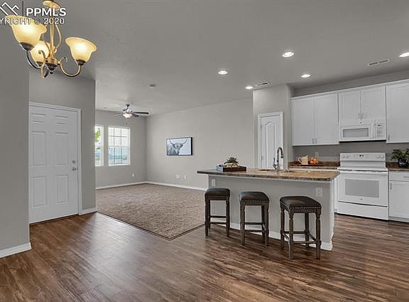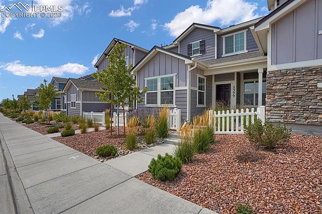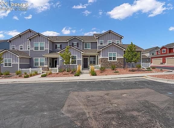 This fabulous Wolf Ranch Townhome offers a wonderful open floor plan with plenty of room to relax and entertain family and friends. You are greeted in a charming covered front porch outside your front door. The Living Room opens to the Kitchen, which boasts white designer Cabinets and Appliances. A separate Dining Area and spacious Center Island allow multiple places to grab a quick bite or sit to enjoy a nice meal. All Bedrooms and the Laundry Room are conveniently located on the second floor. A spacious Master Suite has an adjoining Bathroom with a raised double vanity and free-standing shower. Two additional nice size Bedrooms and a Full Bath complete the second floor. What a wonderful bonus to have fresh new carpet, luxury wood-plank laminate flooring and a neutral color palette throughout the home. There is also a Tankless Water Heater to provide energy efficient hot water. In the Garage, you will find a high quality overhead rack to easily store holiday decorations, coolers, luggage and other items out of the way. The landscape, snow removal and exterior maintenance of the home are taken care of by the HOA. Wolf Ranch is a highly sought after community in award winning Academy District 20 and conveniently located on the Northeast side of Colorado Springs near shopping, numerous restaurants and hospitals. With over 10 miles of trails, 300 acres of parks, a pool, mountain views and open space, youâll never tire of the spectacular views and easily be able to call this HOME!