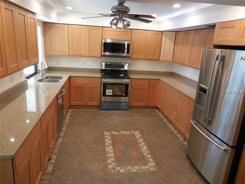 Move-in ready and price reduction for quick sale! Great family, true 4 bedroom (all with walk-in closets), 3 bath, large solar heated pool and lake-front home! Freshly painted inside and out, NEW stainless appliances, updated bathrooms, updated kitchen, new water heater, new A/C 2016 and all ready for your family! Great lake views from the pool to sit in the mornings and have a cup of coffee and watch all the birds and ducks that frequent this lake. This home features volume ceilings, skylights and a spacious open floor plan with new ceramic tile throughout living room and master bedroom. Wonderful meals can be prepared in your spacious kitchen with a breakfast nook and pass-thru bar to the pool. Great room is ideal for entertaining guests with sliding glass doors leading to the pool lanai. Master bedroom suite has walk-in closet and master bath has a custom tiled Roman shower with brushed nickel fixtures, solid surface counter and soft close high profile toilet with push button flush which allows you to save water and just installed a brand-new ROOF as of 06/2018. Center Gate is in close proximity to I75 and several great schools and universities and shopping and let's not forget that we have some of the BEST beaches on Siesta Key/Lido in Sarasota located within minutes!