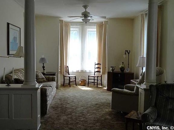 Comfortable, wonderful older style home with spacious, bright rooms. Welcomes you as you walk in. Double living rooms, den, downstairs bedroom, 3/4 bath. Formal dining room, kitchen with all appliances and laundry room. Second story has 4 bedrooms, large bath and a sleeping porch. Large 1 1/2 stall garage with added summer room. Dining room has wainscot walls and a pass thru to kitchen. Cherry hardwood floors throughout. Formal front entryway with double doors. Wonderful sitting porch across front of house.