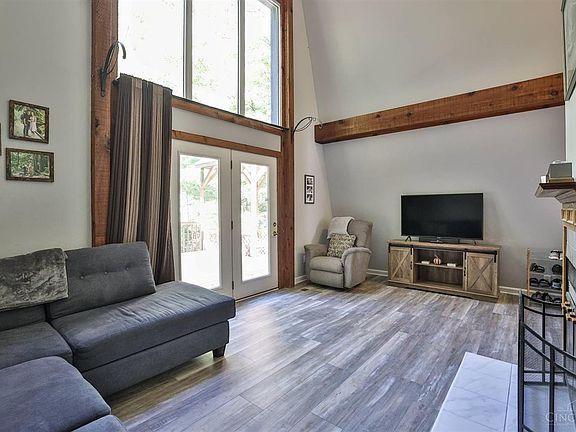 AMAZING OPPORTUNITY Nestled in the Woods you'll feel away from it all yet right around the corner from everything. 3 Bedrooms 1.5 Baths. Make this your sanctuary home, an ideal Airbnb or just a fun weekend getaway. 3.02 acres all wooded with walking trails, tons of guest parking, freshly stained wrap around deck wooded backyard with wood fence & Shed for plenty of storage. Cathedral beamed ceiling in great room with wood burning fireplace, walks out to deck with windows that bring the outdoors IN! All brand new LVT flooring on 1st floor, brand new carpeting on 2nd floor, Roof 2019, custom blinds, New Hot Water Heater, New Garage Door opener. Bright, Shiny & Pristine kitchen! 2nd floor Primary Suite, two cozy bedrooms on 1st floor great for office space! Oversized 2 car garage.