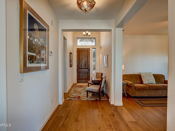 Highly sought after private location with beautiful panoramic views in Granite Dells Estates. This Mandalay built home with over $50,000 in upgrades, Morning Sky floor plan boasts two bedrooms (each with a private bath with granite counter tops & custom tile shower) plus den and additional powder room and a large laundry with wash sink and cabinetry. Cambria Quartz kitchen island & quartz counters with Dal Tile backsplash, 5 burner gas cooktop plus convection oven & microwave and soft close cabinetry drawers. Enjoy the bright airy great room with beamed ceiling and floor to ceiling tile fireplace w/hearth, 12 ft. sliding glass doors in great room, open to large covered extended paver patio with expansive views of the Granite Dells and Granite Mountain. Professionally landscaped private backyard has a water feature, plus extensive use of paver walkways and stone accents on the exterior of home. This home offers a 3 car tandem garage with charging station, tankless water heater, security screen door with leaded glass transom and daylight window at the front door. HRV heat recovery ventilator system and recently replaced roof.