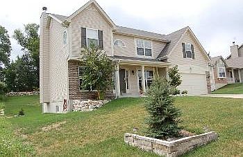 Listing agent: Paula Exarhou, Call 636-227-0076 for information. Wonderful features, exceptional value in this five years new, open and spacious 4 Bed/3.5 bath two story home in Seckman Lake Estates!  Lovely entry with NEW FLOORING, den and formal dining room.  Comfortable family room has a large bay window, open stairs to the upper level and ENJOY LOW GAS BILLS with your beautiful stone wood burning fireplace.  LARGE kitchen has center island and breakfast bar, nice lighting and appliances, MANY maple cabinets, planning desk, NEW DOUBLE SINK, NEW FLOORING, dining area with lovely chandelier and sliding glass door to a lovely backyard patio.  Four bedrooms including Master Bedroom Suite with his/hers walk-in closets, bay window and luxurious Master Bath featuring double sink with marble vanity top, soaking tub and separate shower with tile and built-in seat.  The bonus/loft room with vaulted ceiling is the perfect place for friends and family to gather! Partially finished lower level with full bath, rec area, bar, extra room and pleant of storage space. Additional featuries include an in-ground sprinkler system, wireless alarm system, second floor laundry and rough-in bath on look out lower level.  Backing to trees, this home is landscaped beautifully and has perpared gardens, perfect for planting your own vegetables. Wonderful neighborhood community with fishing lake, pools and cabana.