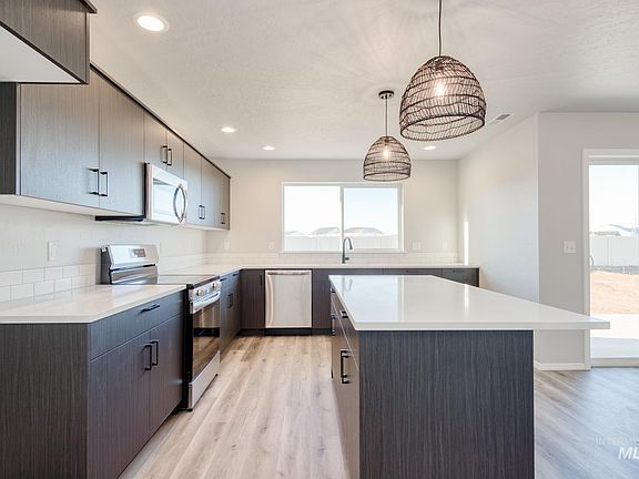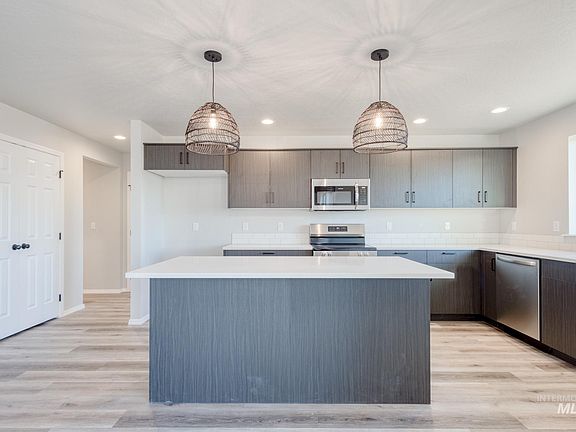 This new home located in beautiful Meridian, Idaho has all the comforts you need & more! The Sundance 2710 floor plan offers all the space you desire. Be delighted on the main level by the modern kitchen area, dining room, and expansive living room. The kitchen comes with stainless steel appliances and stylish solid surface countertops, adding both functionality and aesthetics to the kitchen. A main level bedroom is ideal for guests or a home office. Upstairs, the other 4 bedrooms and an additional loft space await. The primary suite beckons as an oasis of relaxation with its soothing soaker tub and a remarkable walk-in closet. Bedrooms 2, 3, and 4 upstairs are thoughtfully laid out. The open loft area is perfect for a second living space, game room, or office. With ample storage throughout and thoughtfully designed spaces, the Sundance provides both style and functionality for everyday living. Photos are similar. All selections are subject to change without notice, please call to verify.